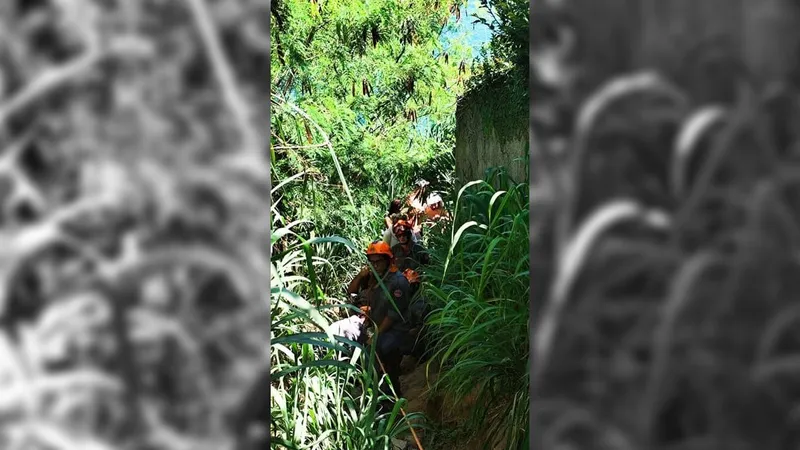 Foi realizado o atendimento pré-hospitalar, com imobilização e estabilização da vítima. O transporte até a viatura de resgate ocorreu com dificuldade, em razão das características do terreno e do acesso restrito da trilha.